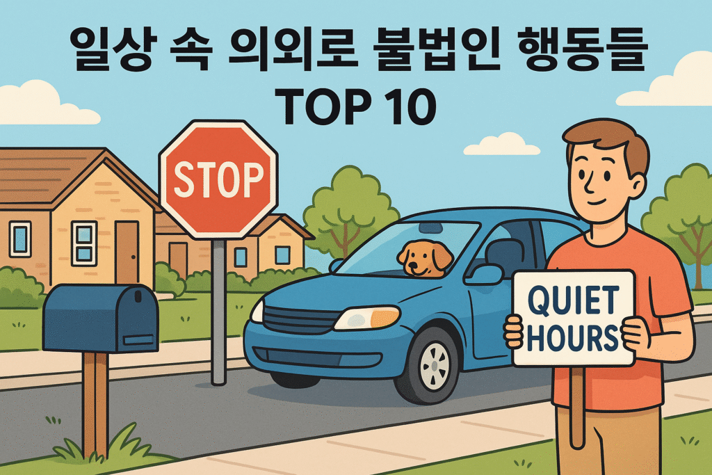 미국은 주마다 법이 다르지만, 대부분의 주에서 공통적으로 불법으로 취급되는 일들이 surprisingly 많다. 한국에서 자연스럽게 하던 습관이 여기서는 법적 문제로 연결되기도 한다. 오늘은 미국 전체 기준으로 보편적으로 금지된 행동 10가지를 간단하지만 정확하게 정리했다. 가볍게 읽히면서도 실제로 도움이 되는 내용이다.