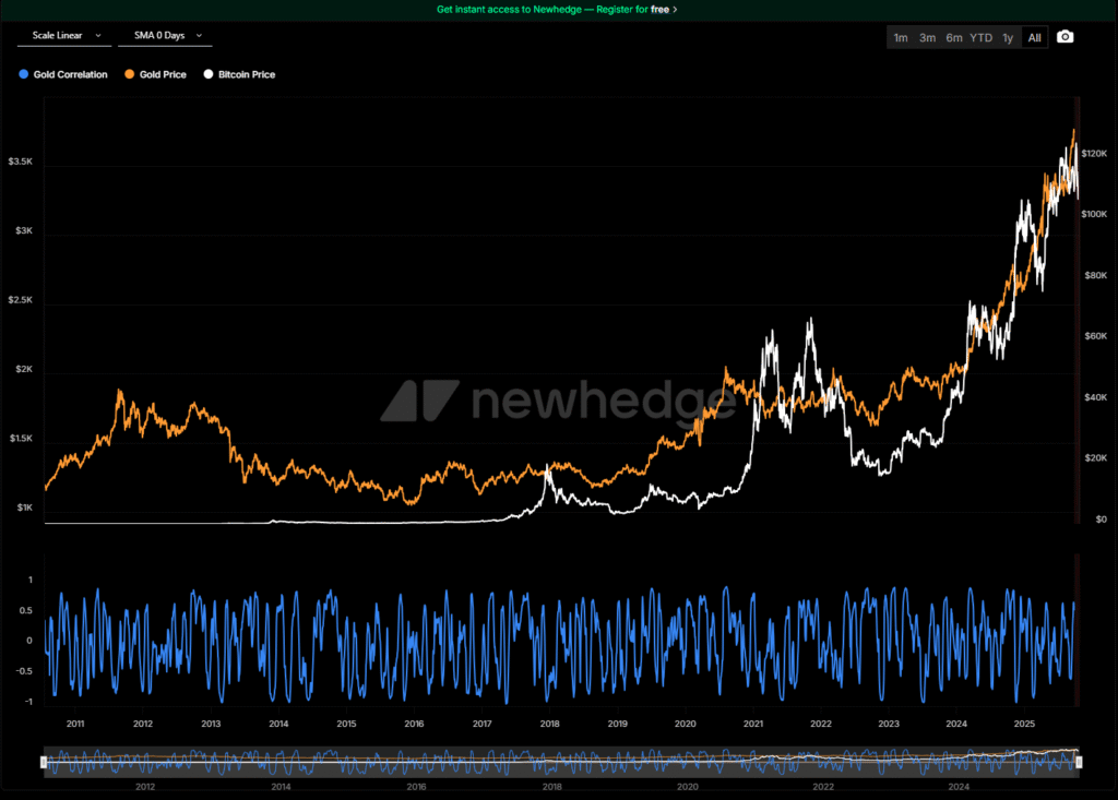 (NewHedge 분석: Bitcoin-Gold Correlation Chart)