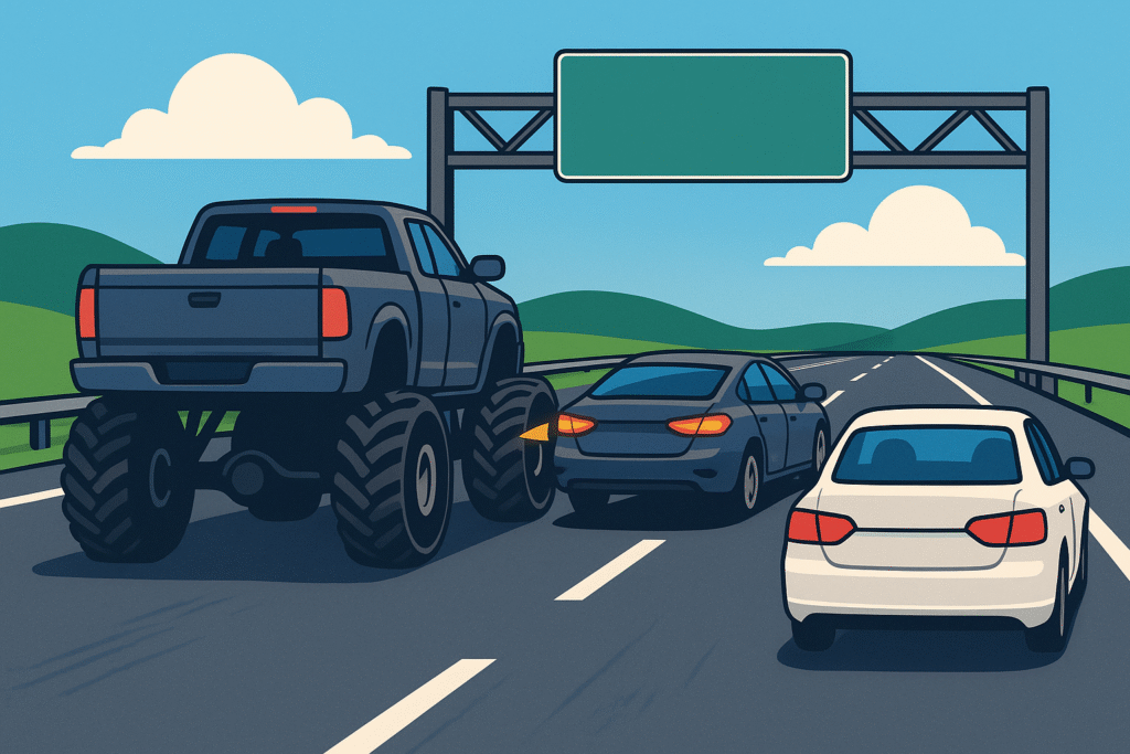 9. ๋ฏธ๊ตญ ๋๋ก๋ฅผ ๋์๋ค๋๋ ๋ชฌ์คํฐ ํธ๋ญ๊ณผ ์ง๊ทํ ์ฐจ๋๋ค